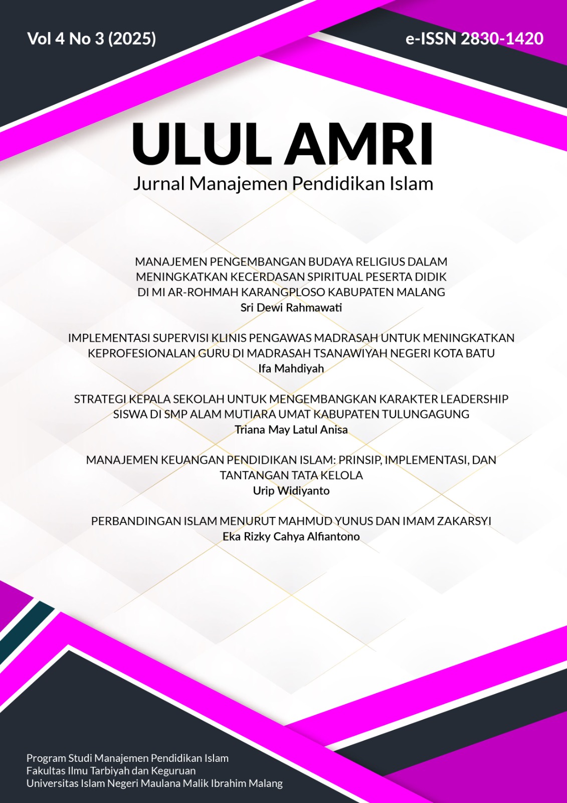 Ulul Amri: Jurnal Manajemen Pendidikan Islam dikelola oleh Program Studi Manajemen Pendidikan Islam Fakultas Ilmu Tarbiyah dan Keguruan Universitas Islam Negeri (UIN) Maulana Malik Ibrahim Malang.